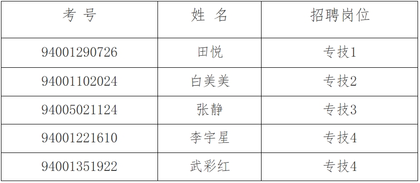 根据《beat365英国官方网站2022年公开招聘工作人员公告》及关于公开招聘工作的有关要求,在资格复审中,专技1岗位笔试成绩第9名,专技2岗位笔试成绩第2名、第7名,专技3岗位笔试成绩第6名,专技4岗位笔试成绩第2名、第3名等应聘人员放弃面试资格。根据笔试成绩由高分到低分按3:1的比例依次递补资格复审人员,现将资格复审递补有关事项通知如下: