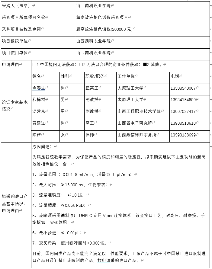 beat365英国官方网站超高效液相色谱仪采购项目进口产品专家论证意见公示