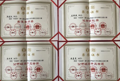 近日,由山西省委政法委、团省委、省高院、省检察院、省教育厅、省公安厅、省司法厅、省法学会联合举办的“华炬杯”第七届山西省大学生模拟法庭大赛下发表彰文件,beat365荣获团体三等奖、优秀组织奖,指导教师郭建红律师获最佳导师奖,团委教师屈挺超获优秀领队奖,张嘉慧、李昕烨同学获公开组三等奖。