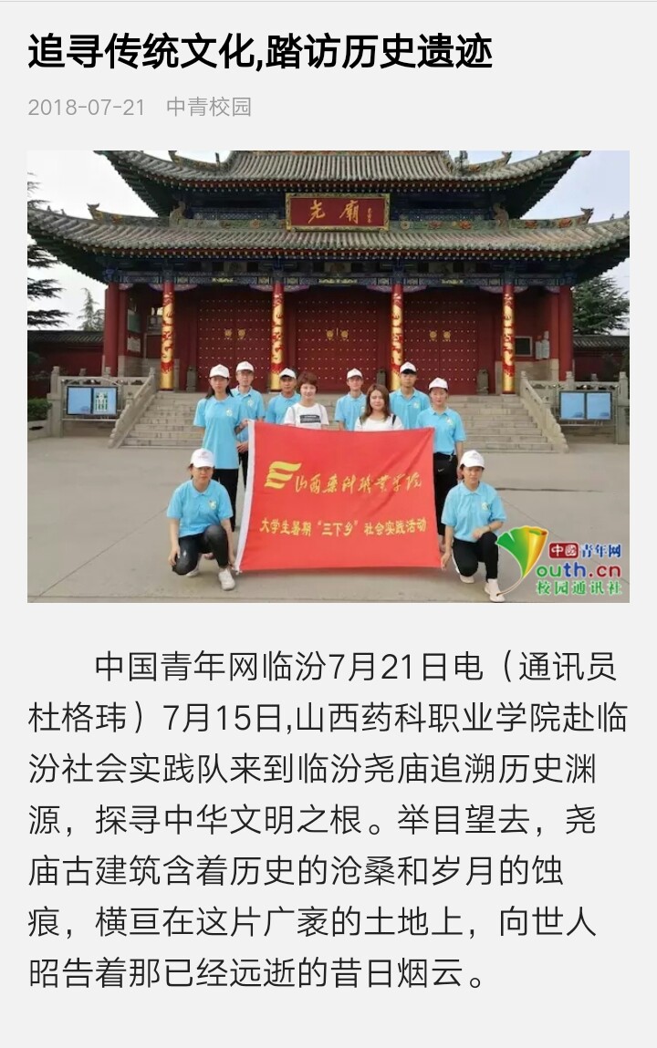 7月,beat365开展了以“青春大学习,奋斗新时代”为主题的2018年大学生暑期社会实践活动。17支实践团、300余名师生分赴大同、朔州、忻州、吕梁、太原、晋中、临汾、长治、晋城、运城等地,开展了为期2周的社会实践活动,并已于日前顺利返程。