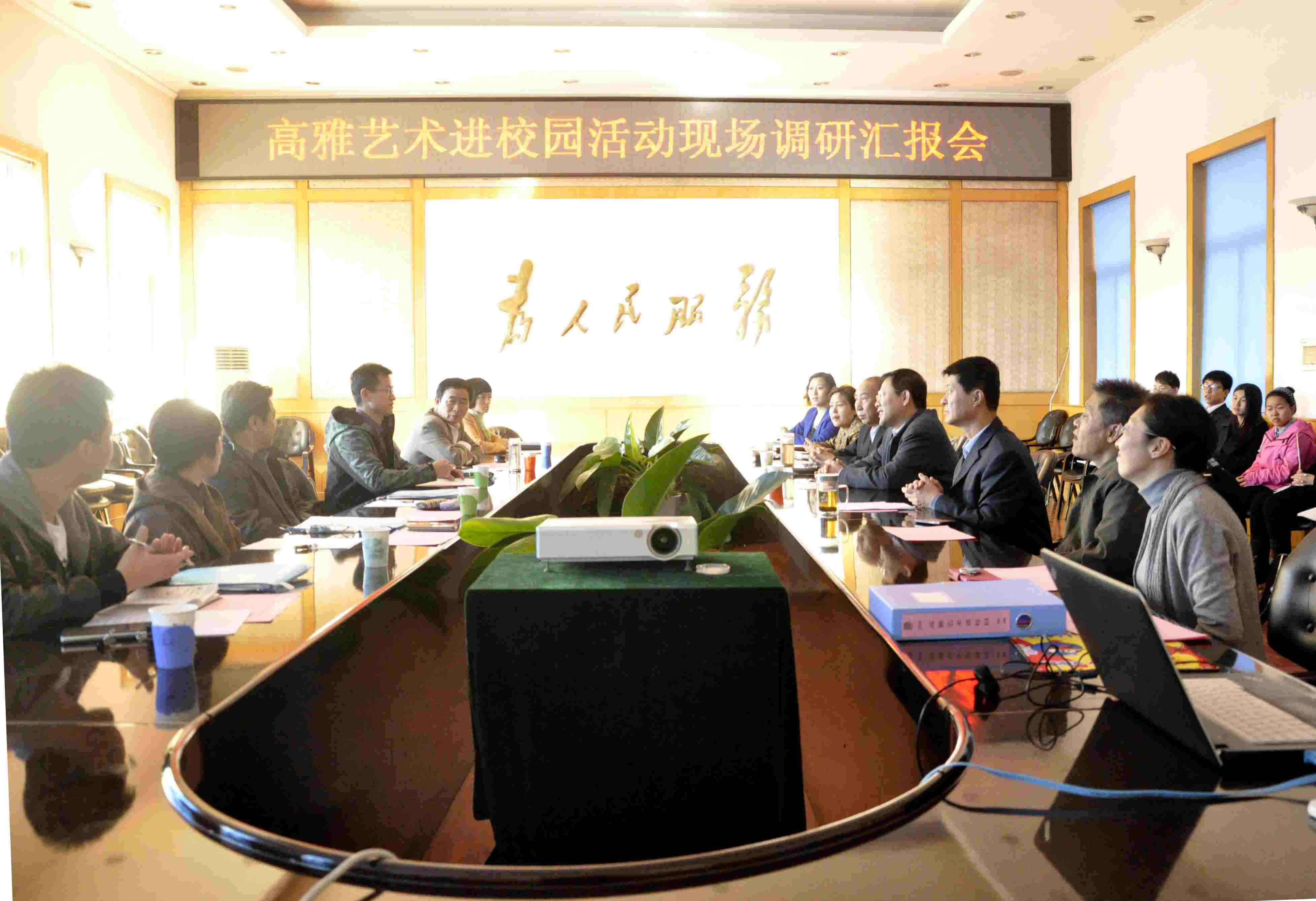 11月12日下午,国家高雅艺术进校园专家组在省教育厅体卫艺处处长任向东、办公室主任李昱等的陪同下莅临beat365,就beat3652013年高雅艺术进校园活动开展情况、经费支出情况、学生评价情况等方面进行调研。院领导张瑞芳、尹士优、胡尔雅、邹本贵和相关部门负责人参加了调研汇报会。