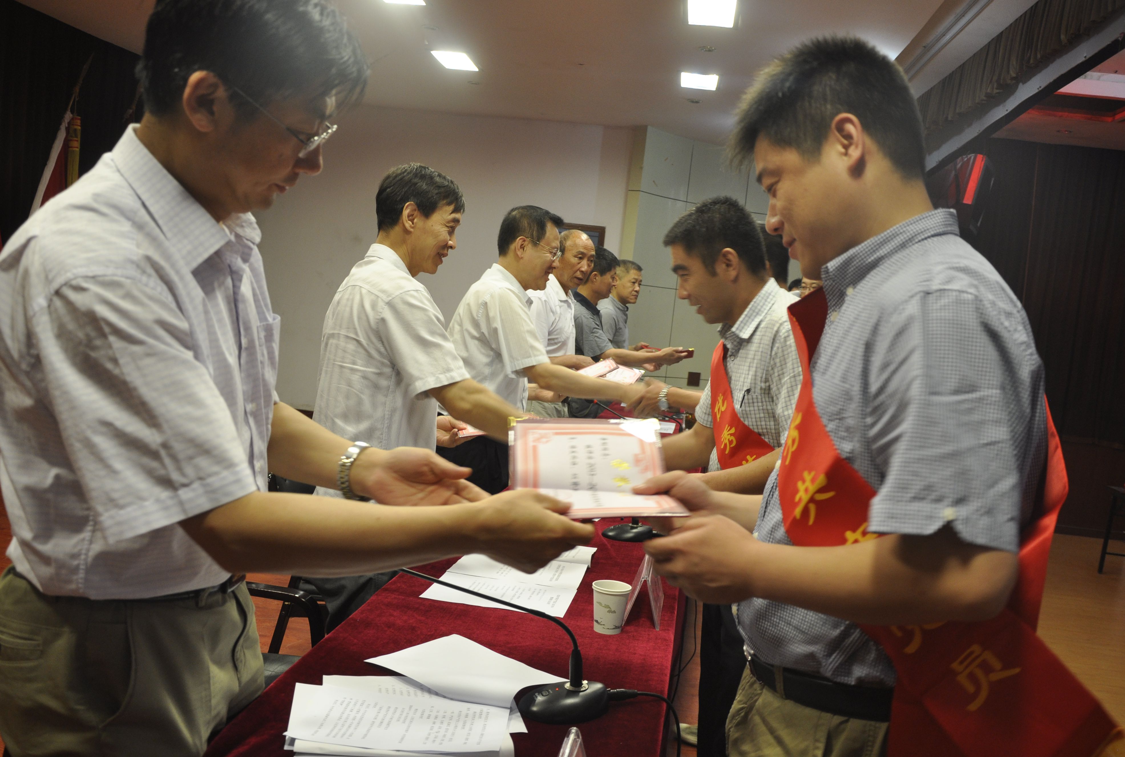 图为院领导向先进集体和个人代表颁发奖牌和荣誉证书