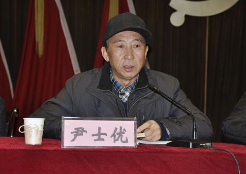 图为尹士优同志交流发言