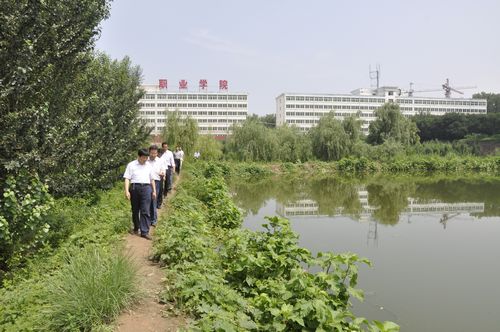 图为领导实地查看污水池