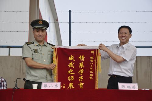 9月15日上午,学院2013级新生军训汇报暨总结表彰大会在运动场隆重举行。学院领导张瑞芳、李华荣、尹士优、王家政、胡尔雅、张震云、邹本贵和军训团副团长武警8652部队张小东少校出席大会。