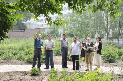 学院党委副书记尹士优同志全面介绍了beat365近年来校园园林化建设工作的开展情况。随后,郝处长等人兴致勃勃地实地参观了校园三个绿化广场、药用植物种植园和院办企业太原晋阳制药厂。