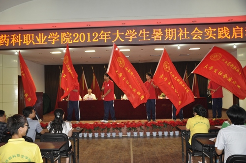 党政办公室副主任、院团委副书记付平同志宣读2012年暑期社会实践活动组织实施方案。志愿者马倩同学代表暑期社会实践活动全体队员发言,表示一定会珍惜机会,团结互助,顾全大局,努力实现预期目标。实践队员代表集体庄严宣誓。