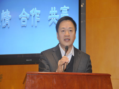 山西省食品药品监督管理局副局长杨恩建代表学院主管部门作了重要讲话。首先他对学院校友会的成立表示祝贺。同时他以特殊校友的名义,就校友会的成立讲了三点意见:一是校友会体现的是一种特殊的亲情,是联系学子与母校情感的最佳纽带,是学校寻求发展的一个重要举措,也是实行校企合作的关键一步;二是校友会创造的是共建共赢的平台,成立校友会,一定要多有活动,多有特殊的活动,多设渠道,多设发展的平台,以此增强校友会的凝聚力和向心力;三是校友会要想办得长久,办得成功,一定要有优秀的辛勤的园丁去维护它,那就需要会长、秘书长、分会的会长和秘书长付出很大的努力,做出积极的贡献。他希望各位校友永做常青藤,年年藤缠树,通过校友会这一平台真正达到加强校友联系、服务广大校友、促进学院发展的目的。