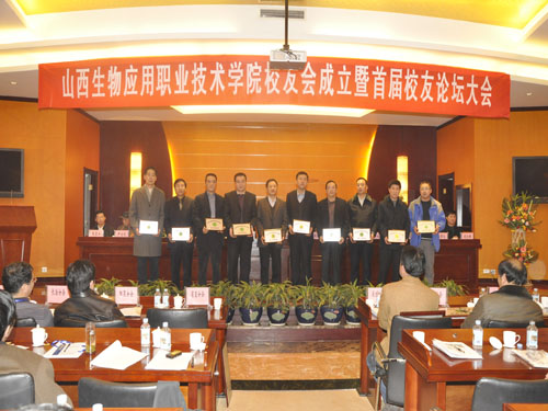 2010年12月26日,学院校友会成立大会在太原漳泽商务酒店隆重举行。大会的主题是“友情、合作、共赢”。山西省食品药品监督管理局副局长杨恩建,友邻单位山西财贸职业技术学院院长牛白林,学院党委书记张瑞芳,党委副书记、院长李华荣,党委副书记、纪委书记龚晋文,党委委员、副院长尹士优、胡尔雅、张震云,学院原领导张清芳、高汝年、程富琳、王敬泽、周晓明出席会议。来自北京、深圳、宁夏、陕西、河北、内蒙古等全国各地和省内各市的校友代表,学院全体中层干部250余人参加了大会。山西省教育厅副厅长王李金、山西大学校友会、学院甘肃校友分会向大会发来了热情洋溢的贺信,国家中医药管理局人事教育司、中国职业技术教育学会医药专业委员会、山西省食品药品监督管理局等70个单位发来了贺电。会议由院党委书记张瑞芳同志主持。