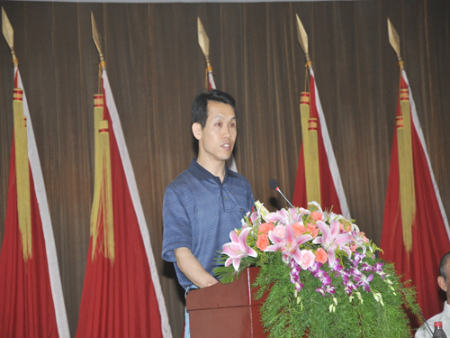 图为山西林业职业技术学院党委书记罗云龙同志代表兄弟院校致辞