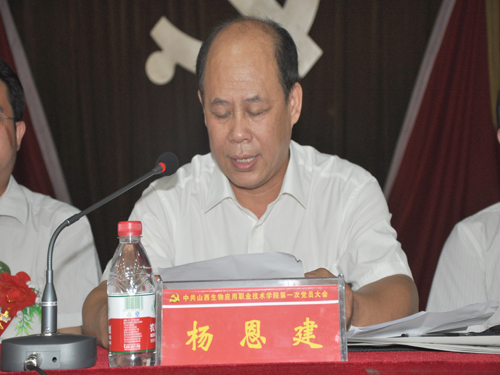 省食品药品监督管理局副局长杨恩建发表重要讲话。他代表省局党组向大会表示热烈的祝贺,并对即将产生的新一届党委提出四点希望:第一,认真把握党的教育方针,全力推进学院改革发展;第二,大力加强基层党组织建设,不断增强党的创造力、凝聚力、战斗力;第三,深入贯彻中央16号文件精神,切实加强和改进大学生思想政治教育工作;第四,提高学院领导班子治校理教能力,不断开创学院事业发展的新局面。