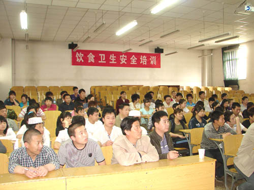 5月13日下午,餐饮部邀请太原市卫生局监督所食品卫生专家杭洋同志,在新教学楼二层二阶对beat365100余名餐饮从业人员进行了饮食卫生安全知识培训。