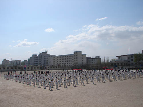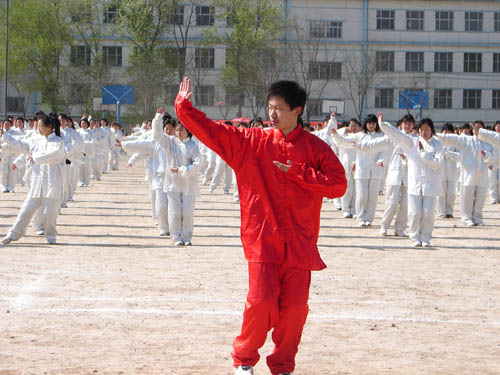 裁判员代表贾一波老师和运动员代表聂晓峰同学分别向大会宣誓。随后由生物制药工程系表演的广播体操、药品经济贸易系表演的舞动青春、中药系表演的太极拳将开幕式的气氛推向了高潮。