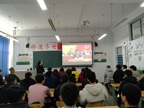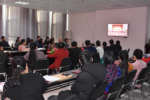在综合楼523会议室,院党委书记张瑞芳同志,党委副书记、院长张震云同志等院领导和机关党总支全体党员一起收看了大会直播。同时,学院其他党总支、直属党支部组织党员干部、广大教师,学工部组织全体学生,院团委组织分团委、青年团干采取不同形式集中收听收看庆祝改革开放40周年大会直播。