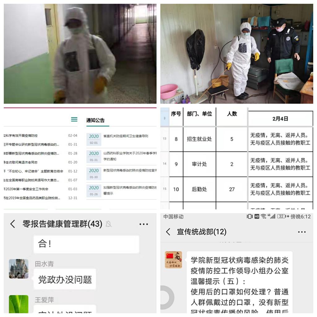 为强化组织领导,学院成立了新型冠状病毒感染的肺炎疫情防控工作领导小组和办公室,并设立了7个工作组,明确工作组职责,积极开展疫情防控和宣传教育工作,全力做好学院疫情防范和处置工作,确保学院疫情防控工作落地落实。连日来,各工作组各司其职,密切配合,有力有序开展疫情防控工作。一是疫情防控以来,学院主要领导深入一线靠前指挥,分管领导具体负责,坚持每日值守在学院,亲自安排部署、检查督促,每日进行疫情工作汇报统计分析,及时跟进安排防控工作。二是认真负责有关信息报送工作和疫情防控工作有关资料的收集、整理、归档。三是进一步强化学院安全保卫工作,严格门卫管理、出入校园人员登记、测体温等工作。四是采购口罩、消毒液、防护手套等,做到疫情防控物资储备充足。五是加大对学院办公楼、宿舍、食堂、家属院等区域的卫生保洁和消毒消杀工作。六是及时对延期开学的教学工作进行安排,积极开展网络教学,并对校外实习工作进行了调整,提出了具体要求。七是积极开展疫情防控宣传工作,通过学院官网、微信公众号发布疫情防控知识、温馨提示等,推送中央、省委、教育部、教育厅防控工作部署和学院防控动态,宣传疫情防控知识,引导师生正确理性看待疫情,增强自我防范意识和防护能力,做到不信谣、不造谣、不传谣。八是督促检查抓落实,对发现的问题及时纠正,层层传导压力,扎实推进任务落实,形成了疫情防控“人人肩上有担子、个个身上有任务”的齐抓共管工作格局。