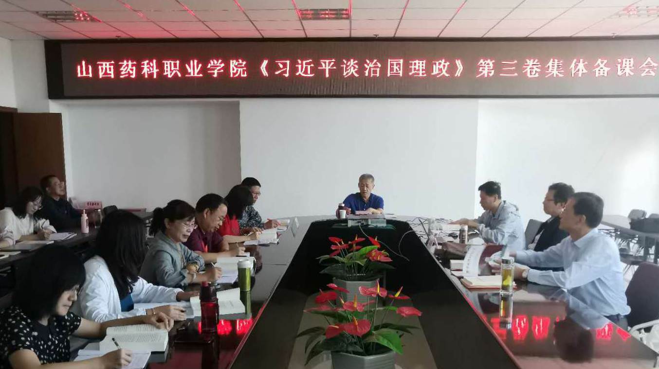 思政部党支部书记郑刚组织与会人员学习了学院《关于认真组织学习宣传<习近平谈治国理政>第三卷的工作方案》。“概论”教研室周选亮副教授就本次备课会做了专题辅导学习。