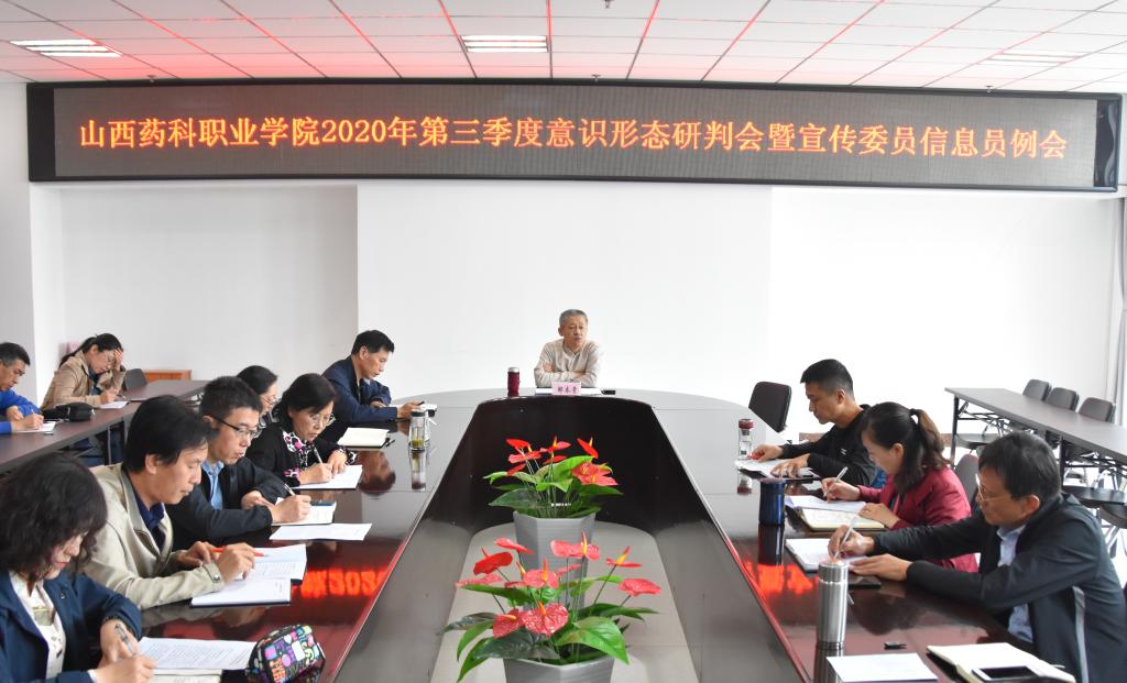 9月30日上午,学院在综合楼523会议室召开2020年第三季度意识形工作态研判会,院党委副书记邹本贵主持会议并讲话,学院相关职能部门负责同志、教学单位党组织负责人、全院教职工新闻信息员参加会议。