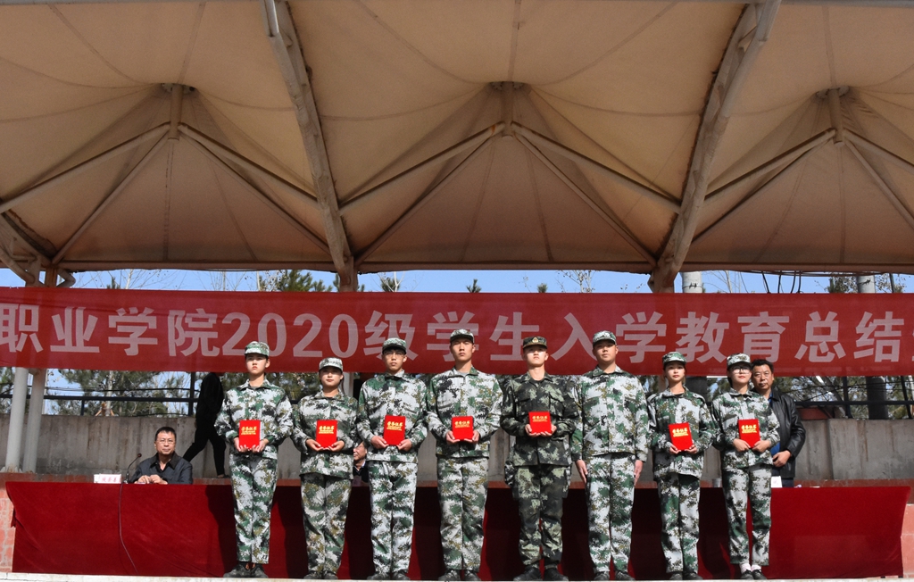 党委委员、副院长贾建斌宣读了学院《关于表彰2020级学生军训先进个人的决定》。院领导和马学峰同志为受表彰的学生代表进行颁奖。