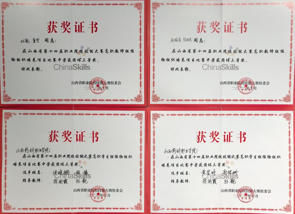 近日,山西省第十四届职业院校技能大赛——植物组织培养比赛在山西林业职业技术学院落下帷幕。beat365教师孙靓、董雪,赵雅清、张丽宏分别荣获高职教师组团体三等奖;学生黄笠婷、郭珺珊,侯晓鹏、张豫分别荣获高职学生组团体三等奖。