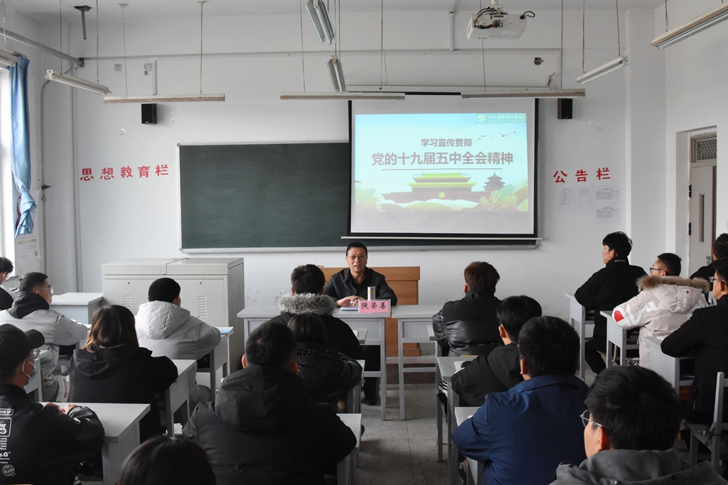 12月8日上午,院党委委员,副院长陕荣善走进器械工程系2020级医疗器械维护与管理2班,为全班同学讲授《形势与政策》课程——专题二:学习宣传贯彻党的十九届五中全会精神。