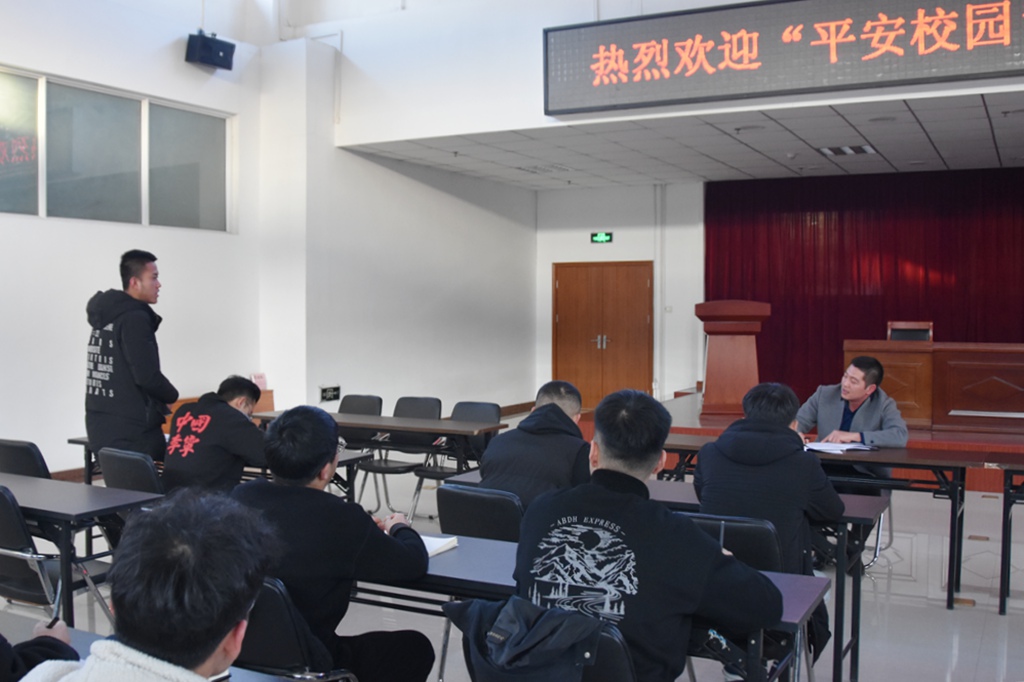 院党委委员、副院长陕荣善向考评组汇报了学院2020年“平安校园”和“三零”单位的创建情况。听取汇报后,考评组分别进行了实地查看和座谈交流,并审阅了学院“平安校园”和“三零”单位创建工作有关材料。