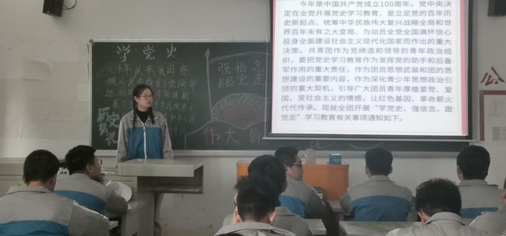 器械工程系各团支部开展了“学党史,强信念,跟党走”主题团课。团支书带领同学们观看了党史学习教育动员大会的新闻视频,共同学习习近平总书记在大会上的重要讲话精神。系分团委书记走进课堂,围绕习近平总书记关于在青少年中抓好党史学习的重要论述,从党史学习的重要意义及如何开展好党史学习教育与同学们进行了分享交流。