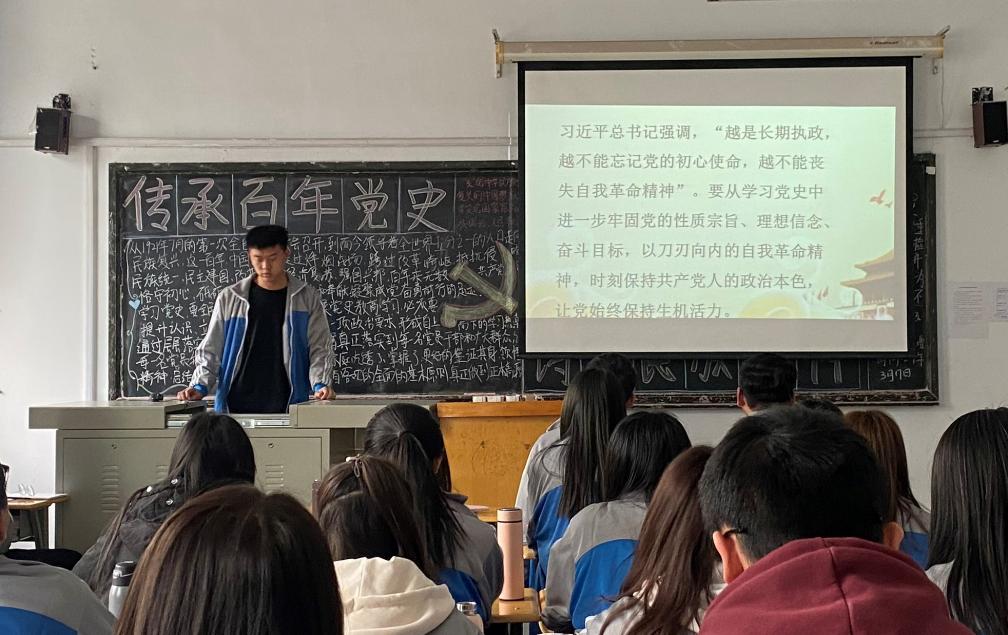 制药工程系分团委开展了以“知史爱党,让红色基因薪火相传”为主题的团课。团支书通过PPT和有关视频向大家介绍了中国共产党的建立,讲述了党在建立道路上的艰难险阻,让大家充分的认识到了中国共产党的艰辛与苦难,并组织小组讨论,加深了大家对党史知识的学习。