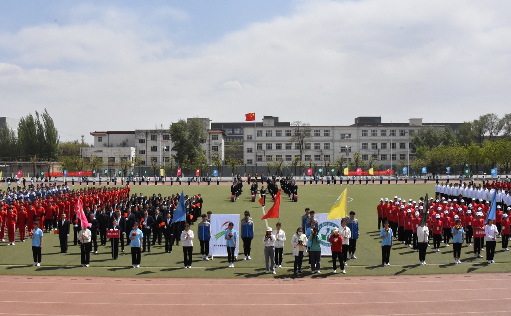 4月28日下午14时,运动会隆重开幕。院领导、各部门(单位)负责人、全院师生出席了开幕式。开幕式由党委委员、副院长陕荣善主持。
