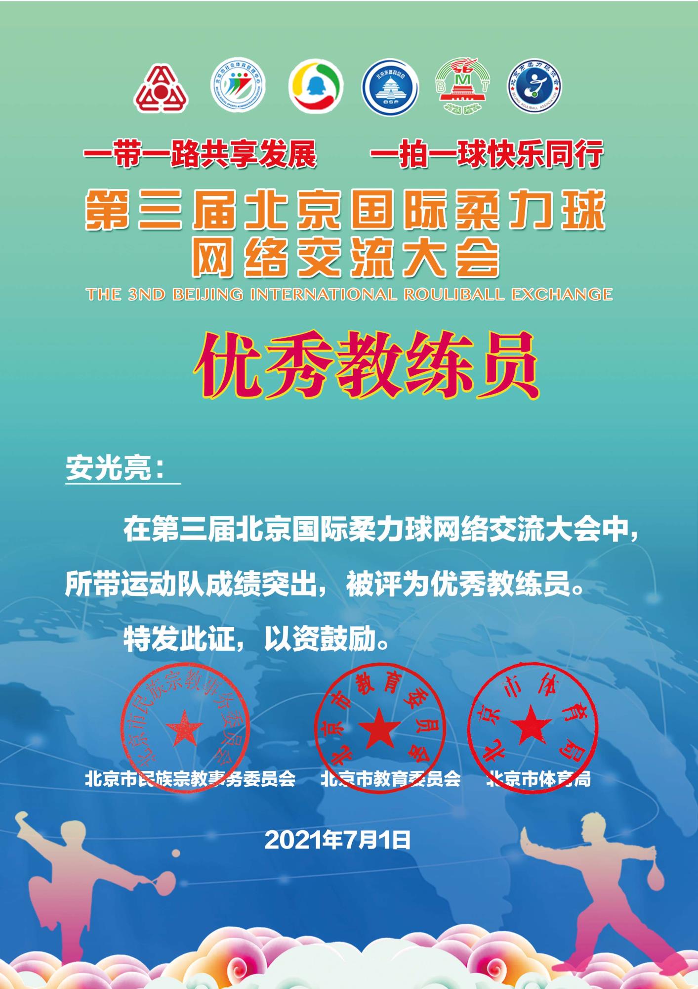 6月20日-30日,第三届北京国际柔力球网络交流大会于网上开赛,beat365公共体育教学部安光亮老师领队,组织学生参加了此次比赛。