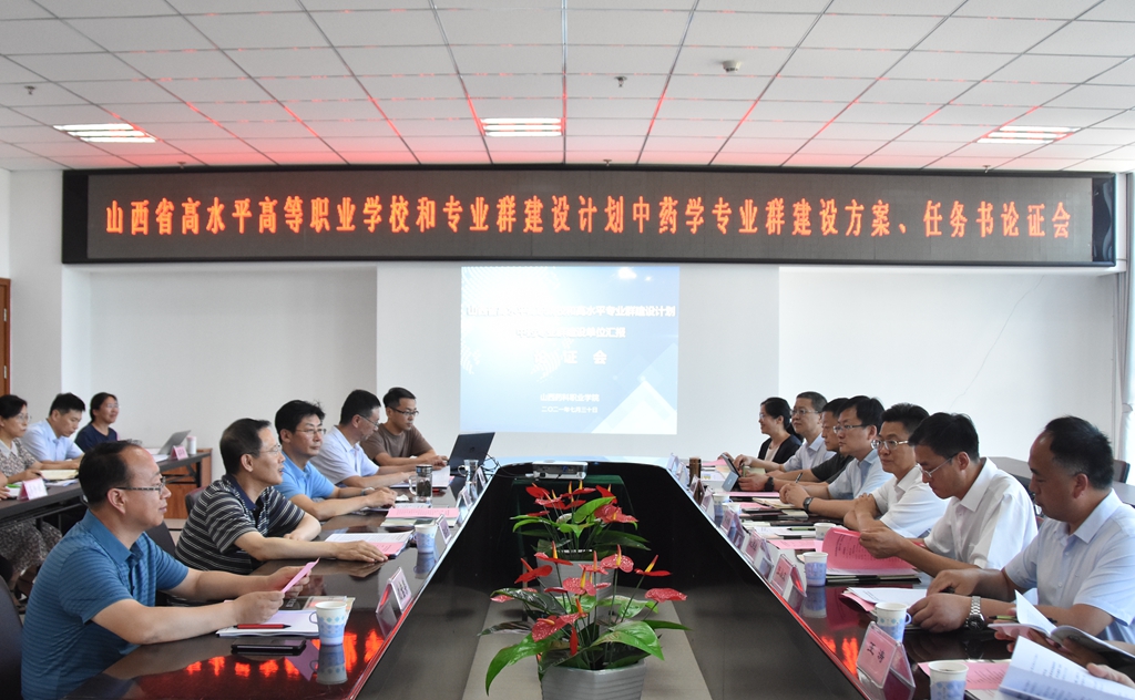 7月30日下午,根据省教育厅统一安排,由浙江医药高等专科学校中药学院院长阮洪生为组长,湖北中医药高等专科学校中药系主任张昌文、山西工程职业学院教授陈清胜、山西工程科技职业大学实验实训教学部主任王涛、山西医科大学第二医院副主任药师王力、亚宝太原制药有限公司副总经理赵树清、山西卫生健康职业学院中药学专业负责人杨翠玲为成员的专家组一行7人,对山西省高水平高职学校和高水平专业群建设计划中药学专业群建设方案、任务书进行了论证。专家组通过实地考察、听取汇报和查阅资料的方式进行了全方位论证。省教育厅副厅长李金碧、省教育厅职业教育与成人教育处处长韩瑞勇莅临论证会并讲话。