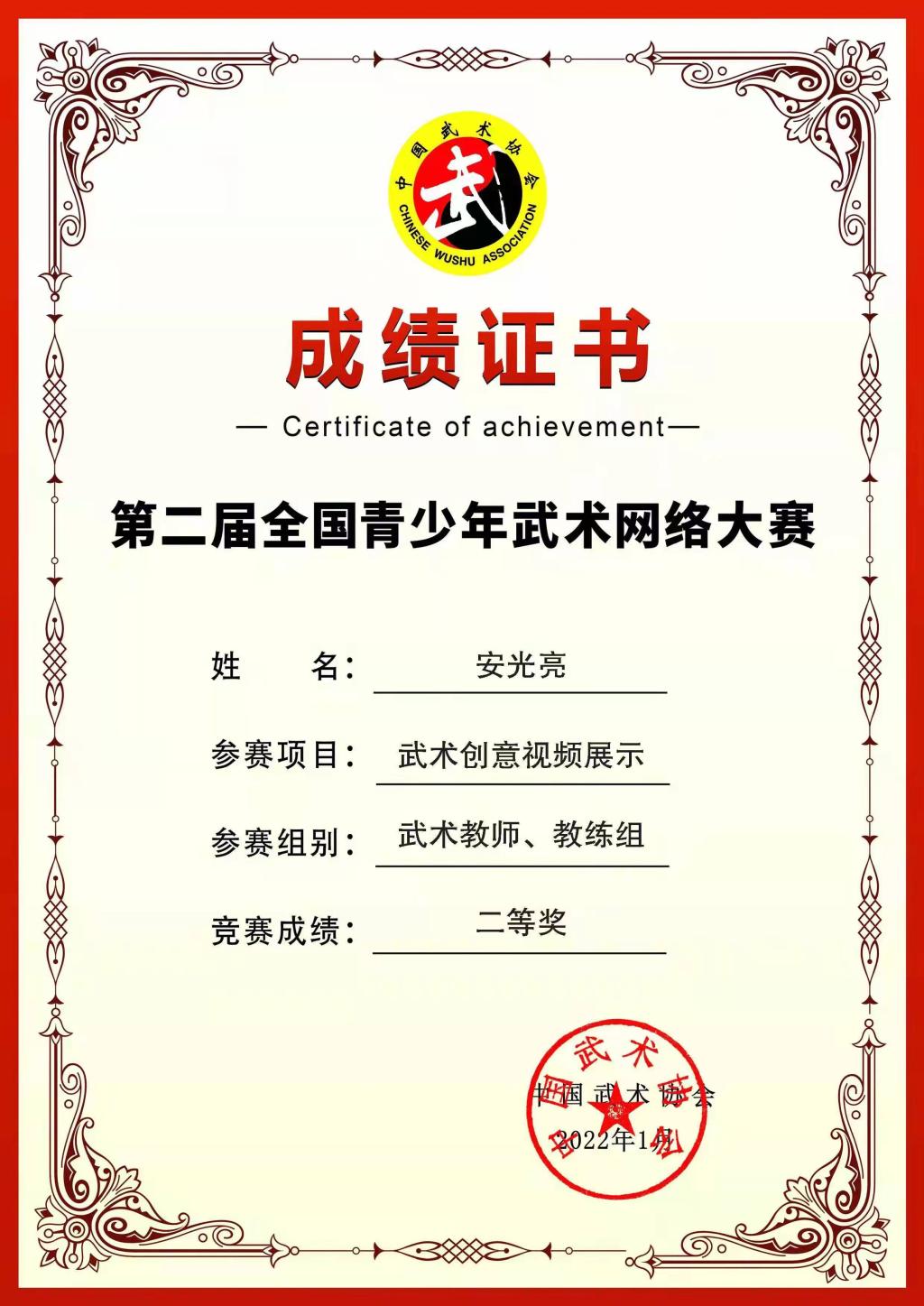 2021年12月20日-2022年1月15日,由国家体育总局中国武术协会组织的第二届青少年武术网络大赛于网上开赛,beat365公共体育教学部组织教师参加了此次比赛。