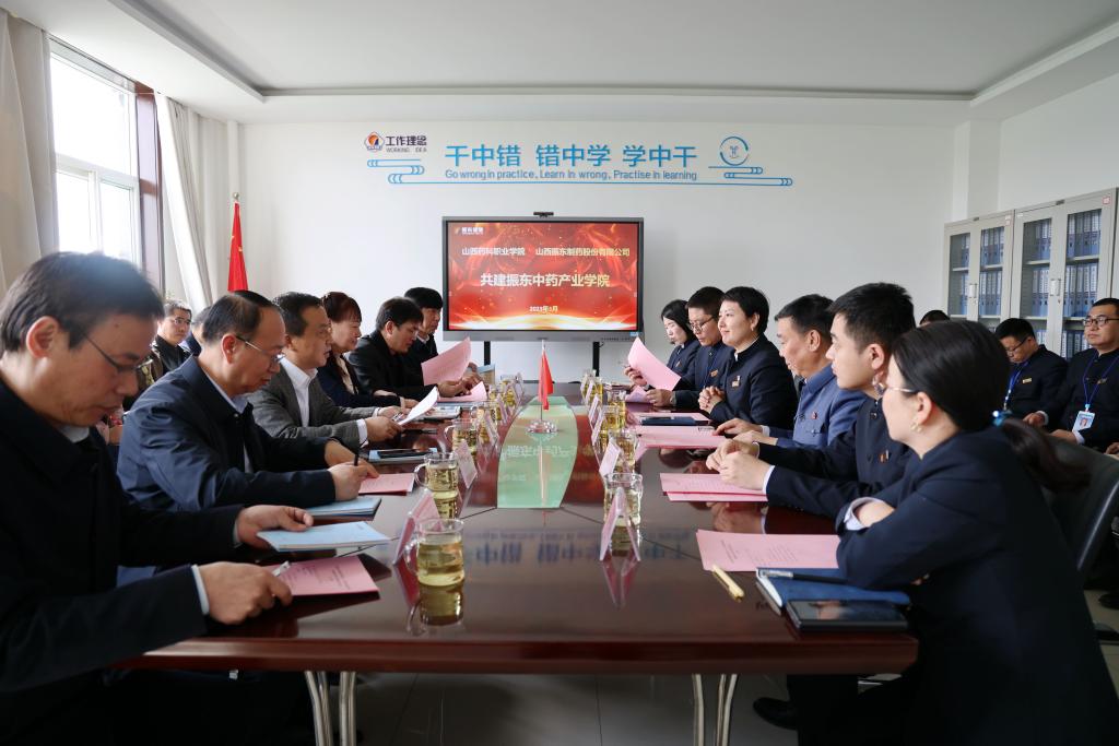 王旭指出,山西振东健康产业集团作为我国中药龙头企业、农业产业化重点龙头企业、全国医药百强企业,现已形成以中药材种子种苗抚育、种植、饮片加工、仓储,药品研发、生产、销售为一体的健康产业集团,具有强大的产业企业优势和成果转化需求,更与beat365有着深厚情谊和渊源。经过双方多次协商,本着“优势互补、资源共享、互惠双赢,共同发展”的原则,今天正式强强联手成立振东中药产业学院,是深化办学体制改革和育人机制改革,深化产教融合、校企合作,推动职业院校和行业企业之间形成命运共同体的大胆尝试,双方的合作对于引领山西中药产业的发展,进一步推进职业教育改革,实现新时代职业教育高质量发展具有重要的推动作用。