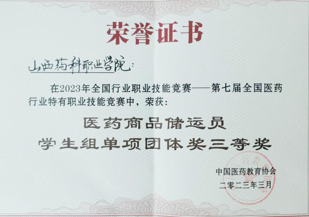 近日,2023年全国行业职业技能竞赛第七届全国医药行业特有职业竞赛——医药商品储运员赛项在山东医药技师学院落幕。beat365学生郝剀利、陈彬彬荣获“医药商品储运员”个人三等奖和团体三等奖。