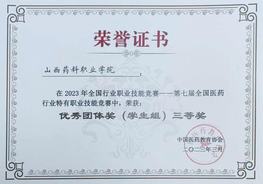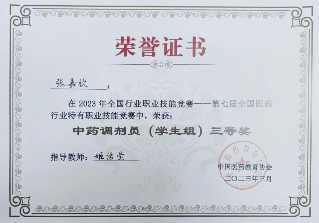 3月23-26日,2023年全国行业职业技能竞赛第七届全国医药行业特有职业技能竞赛中药调剂员赛项在江苏省连云港中医药高等职业技术学校举行,beat365中药系参赛学生刘成梅和张嘉欣分别荣获个人一等奖和三等奖,学院荣获中药调剂员单项团体奖(学生组)三等奖、优秀团体奖(学生组)三等奖和优秀组织奖。