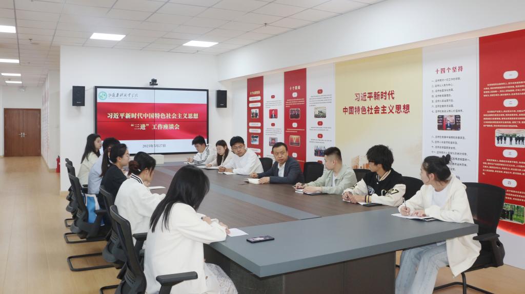 为进一步加强大学生思想政治教育工作,深化学院“三全育人”工作成效,推动习近平新时代中国特色社会主义思想往深里走、往实里走、往心里走。近日,学院党委书记王旭与学生代表举行了学院习近平新时代中国特色社会主义思想“三进”工作座谈会。