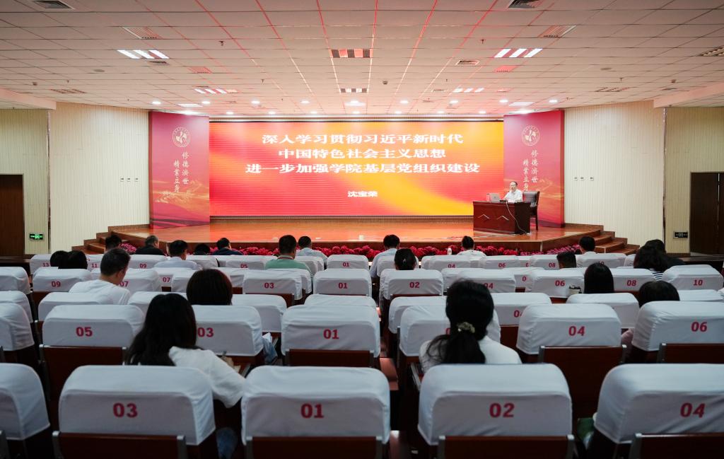 专题党课上,沈宝荣从全面加强学院基层党组织建设的重要意义入手,带领与会成员集体学习了党的十八大、十九大和二十大报告中,有关党的基层组织建设的重要论述。他表示,学院基层党组织是学院治理体系中的重要环节,担负着把党的路线方针政策落实到学院基层的重要职责。不断增强学院基层党组织的政治功能和组织功能,持续推动学院基层党组织全面进步、全面过硬,对于推动学院“1339”行动方案落细落实,引领学院高质量发展,具有十分重要的意义。