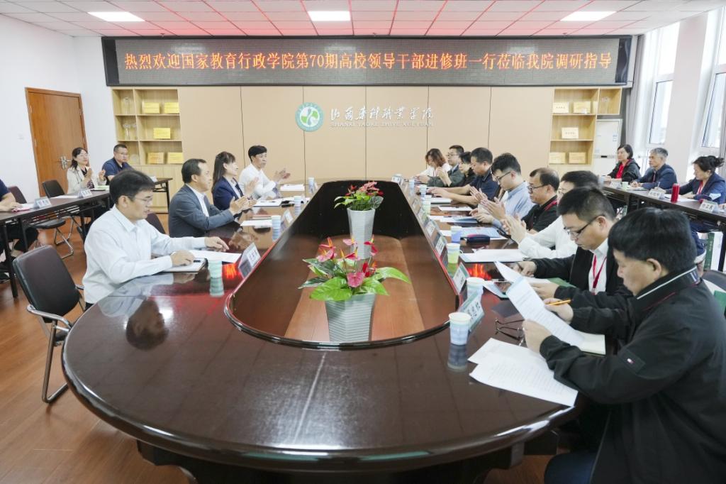 9月24日下午,国家教育行政学院职业教育研究中心研究员佛朝晖教授带领第70期高校领导干部进修班调研团一行18人莅临beat365调研交流。双方围绕“高职院校推进产教融合、科教融汇,促进职业教育服务区域经济发展”主题开展座谈研讨。学院党委书记王旭,院长张轩萍,纪委书记庄东军、副院长原超参加座谈会。