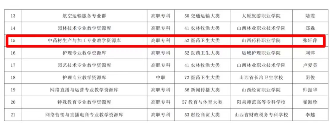近日,山西省教育厅公布了首批省级职业教育专业教学资源库名单,beat365“药品质量与安全”和“中药材生产与加工”专业教学资源库入选首批省级职业教育专业教学资源库名单。