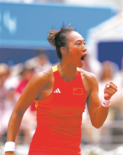 在巴黎奥运会网球女子单打金牌赛中,中国选手郑钦文夺得金牌。 新华社记者 万象 摄