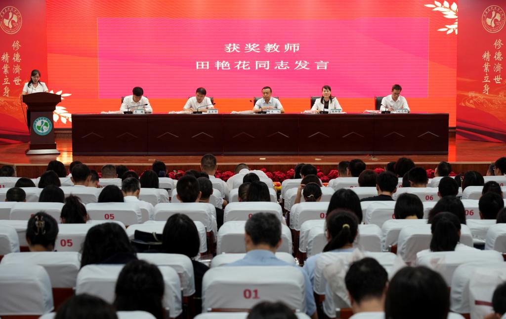 金秋九月,硕果盈枝;躬耕百草,桃李芬芳。9月10日,学院在综合楼一层报告厅隆重举行庆祝第40个教师节暨表彰大会。院领导班子成员出席大会,全体教职工、学生代表参加大会。大会由院党委副书记、院长张轩萍主持。