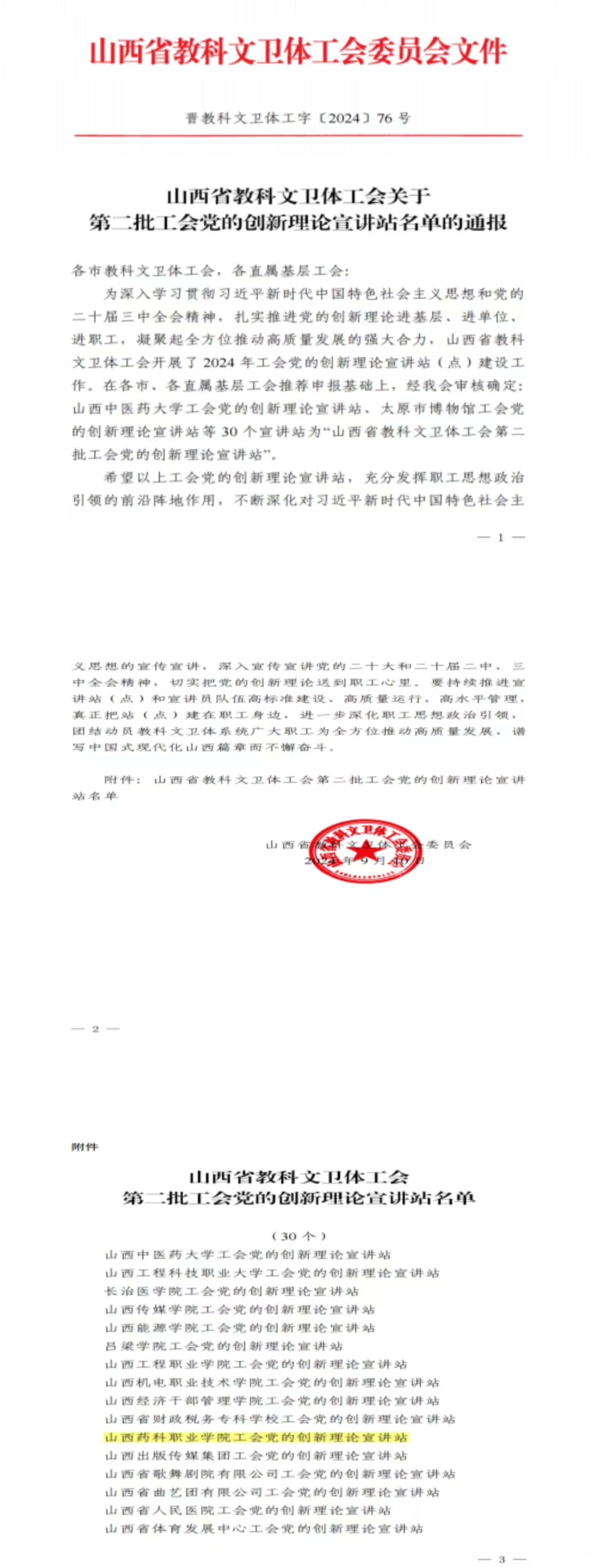 近日,山西省教科文卫体工会公布了关于第二批工会党的创新理论宣讲站名单的通报,beat365英国官方网站党的创新理论宣讲站被命名为山西省教科文卫体工会第二批工会党的创新理论宣讲站。