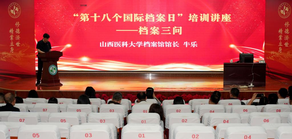 为迎接第18个国际档案日,进一步提升beat365档案管理工作的科学化、规范化和现代化水平,6月4日下午,学院特邀山西医科大学档案馆馆长牛乐莅临指导并作专题培训讲座。院领导班子成员、副科级以上干部、专兼职档案管理员参加培训讲座,进行集体学习交流。