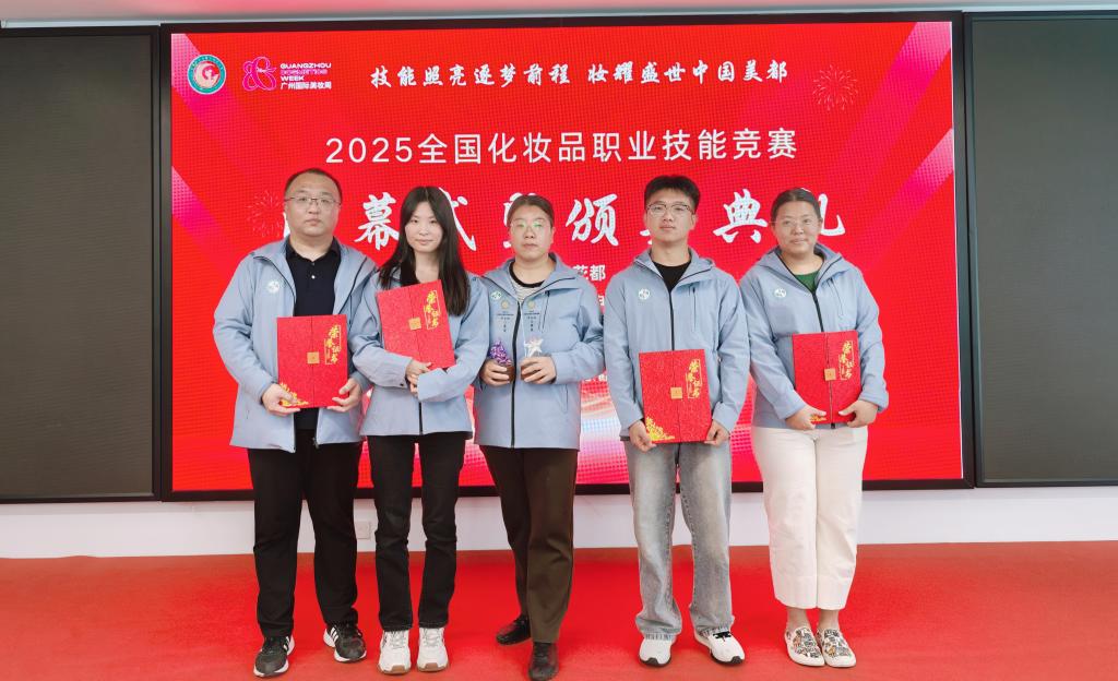 11月5日至7日,2025年全国化妆品职业技能竞赛圆满收官,beat3652023级精细化工技术1班学生王浩宇荣获二等奖,2023级精细化工技术1班学生徐子丰荣获三等奖,老师孙笑宇、王艺芳荣获优秀指导教师。