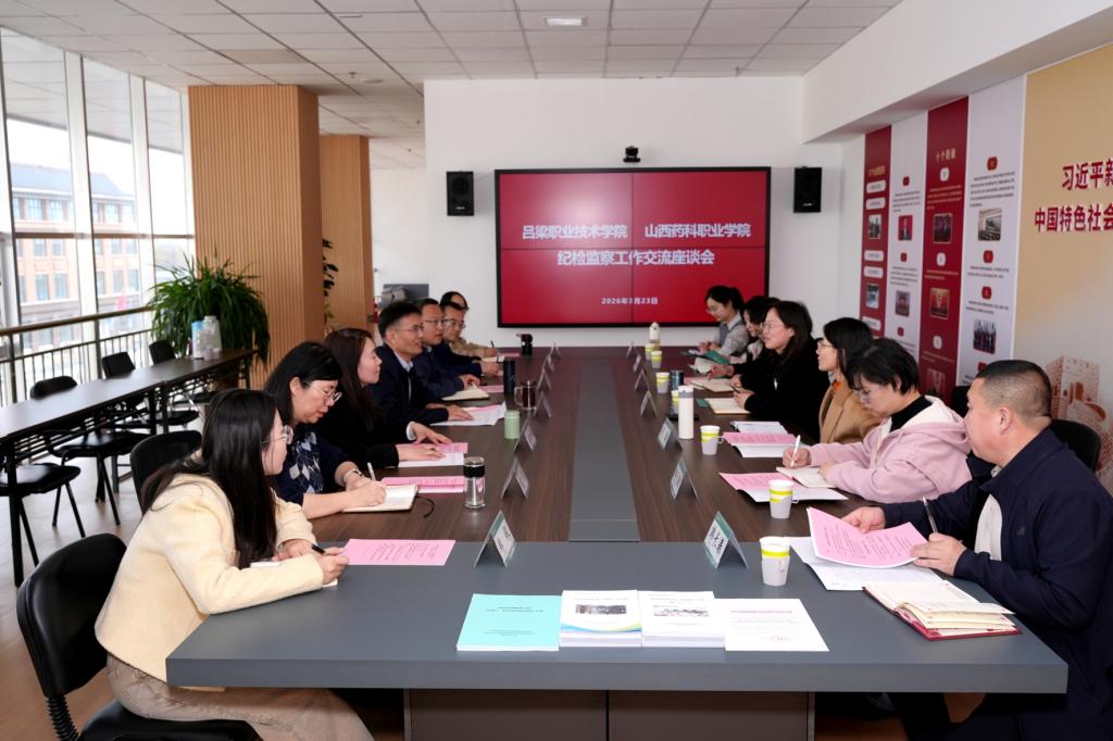 3月23日下午,吕梁职业技术学院党委委员、纪委书记左燕娜一行7人来beat365交流调研。双方在综合楼414会议室召开交流座谈会。学院党委委员、纪委书记、监察专员庄东军出席会议。学院纪委委员、纪检监察机构相关人员参加座谈交流。