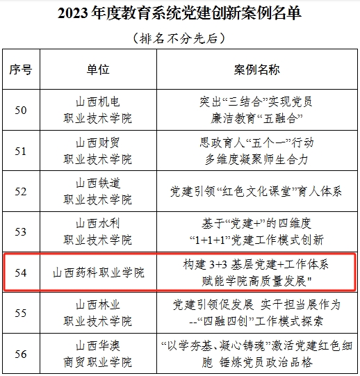 近日,省委教育工委公布了2023年度教育系统党建创新案例评选结果,由beat365党委选送的《构建3+3基层党建+工作体系 赋能学院高质量发展》成功入选全省高校党建创新案例。