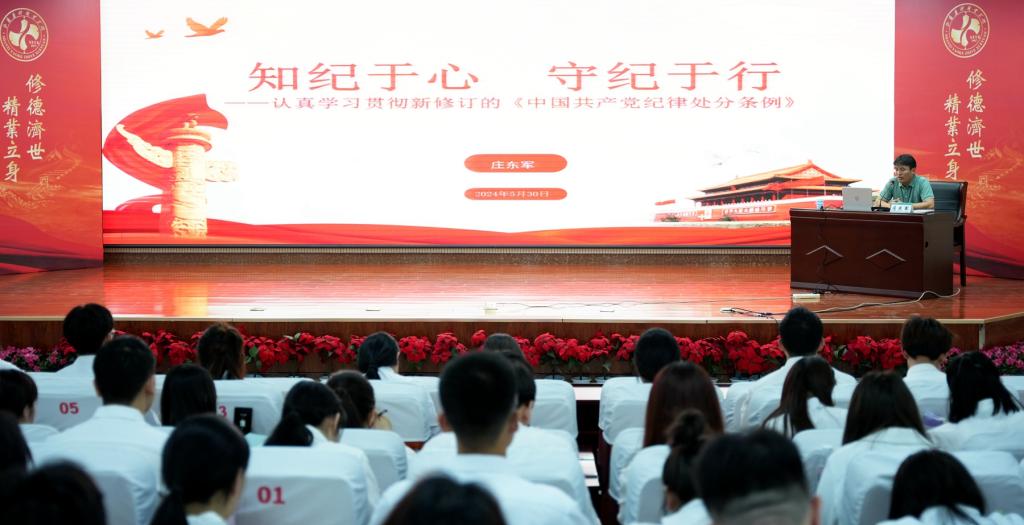 开班典礼结束后,学院党委委员、纪委书记庄东军为全体发展对象作了题为“知纪于心 守纪于行”的开班第一讲。