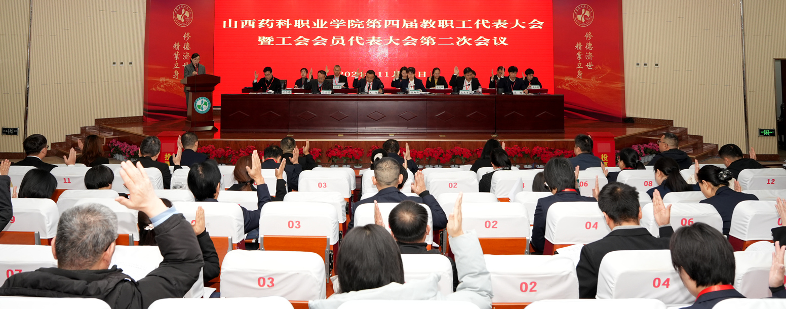 学院党委书记王旭在讲话中代表学院党委向大会的召开表示热烈祝贺!他指出,本次“双代会”始终洋溢着团结、民主、和谐、奋进的氛围,是一次增进共识、汇聚力量、鼓舞干劲、风清气正的大会。会议期间,各位代表紧紧围绕学院事业改革发展大局,认真履职尽责,以拳拳之心发肺腑之声、建睿智之言、献务实之策,充分展现了大家对学院事业发展的关注支持和对学院高质量发展的热切期盼,更充分体现了大家作为药科主人翁的高度责任感和使命感。他强调,当前学院正处于提升内涵发展、特色发展、跨越发展的关键期,广大党员干部要回归忠诚干净担当的本质,勤勉工作,尽职尽责;广大教师要回归教育家精神的本质,爱岗敬业,教书育人;学院全部工作要回归以学生为中心的本质,立德树人,全面实施好“1355”三全育人工作体系。广大教职工们做好药科主人翁,以实际行动回答好“教育强国,药科何为”的时代课题,携手书写山西药科改革发展的精彩华章。
