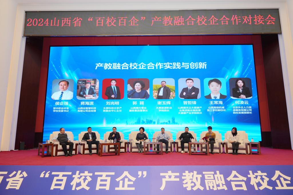 此次会议由山西省职教社、省工商联、省教育厅、省人社厅联合主办,有来自全省的103所本科院校、中高职院校、技工院校以及160家国有企业、民营企业代表共460余人参加对接会。