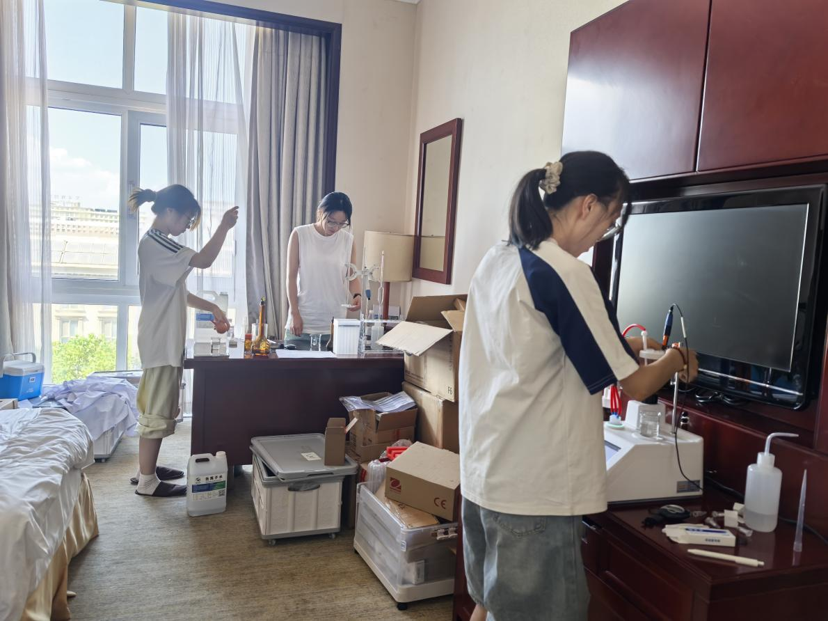 “你们只管专心训练,其他事情交给学校。”这句来自院领导的承诺,成为药学系参赛团队(指导教师甄会贤、台晶杰,学生刘彬倩、李佳灿、张心悦、任润子)最坚实的后盾。学院不仅设立专项基金、统一采购实验耗材,还安排服务保障部每日供应热乎餐食、提供防暑防蚊物资,全力营造安心备赛的环境。