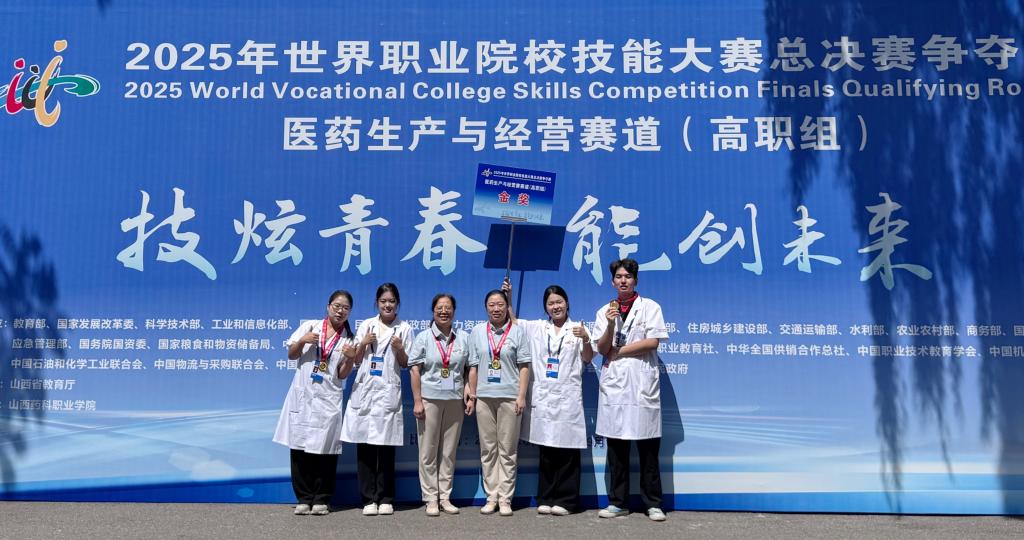 “我们获得了金奖,我们创造了历史,太棒啦!”在2025年世界职业院校技能大赛医药生产与经营赛道总决赛争夺赛的颁奖现场,beat365英国官方网站的参赛学子紧紧相拥,激动的欢呼声中闪烁着泪光。金秋时节,这项国家级顶级赛事在beat365英国官方网站圆满落幕,beat365中药系与药学系两支参赛队伍双双摘金,山西省教育厅第一时间发来贺信,致以热烈祝贺。与此同时,远赴芜湖参赛的食品系参赛团队也在食品与粮食赛道上奋力拼搏,捧回一枚沉甸甸的铜奖。奖牌的颜色虽不同,却同样闪耀着汗水与坚持的光芒。每一支队伍都在这个秋天,用匠心织就青春梦想,用技能书写家国情怀。现在,就让我们一起走近他们,了解荣誉背后的奋斗故事。